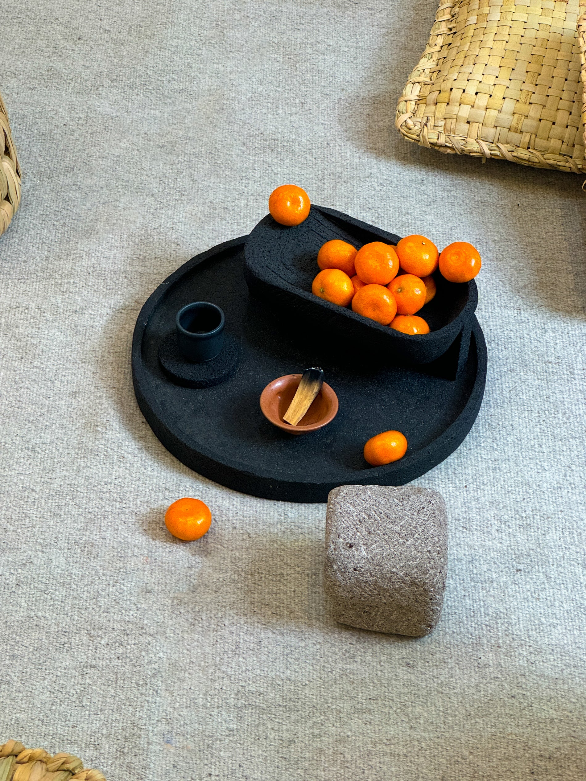 In txt.ure, we are material purists. We source one of the most uncommon dense basaltic stone in the deepest part of the State of Mexico, where we are now running workshop. The black color finish of the stone is natural, sprinkled with silica that gives it a unique shimmer, adding up to its extraordinary qualities