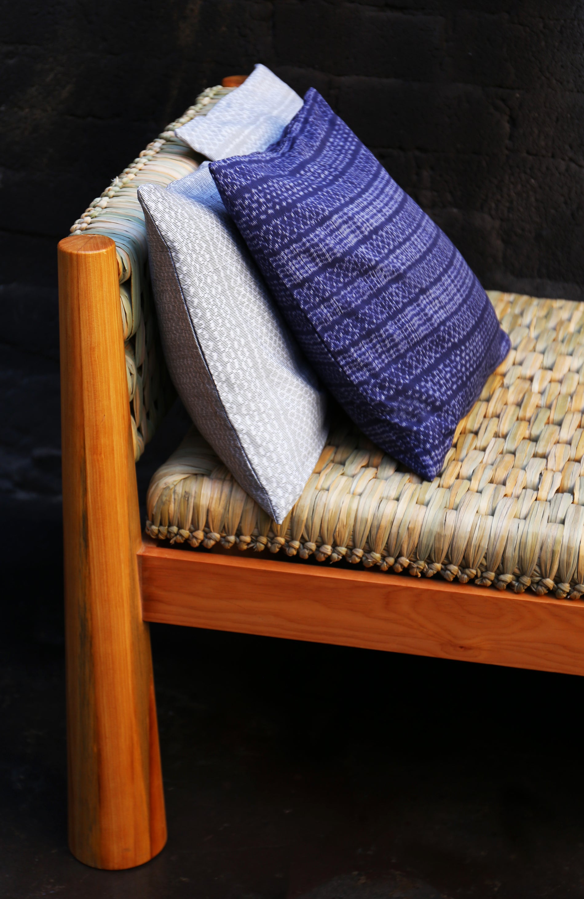 100 % Hand woven in Tule natural fiber, customizable wood bench