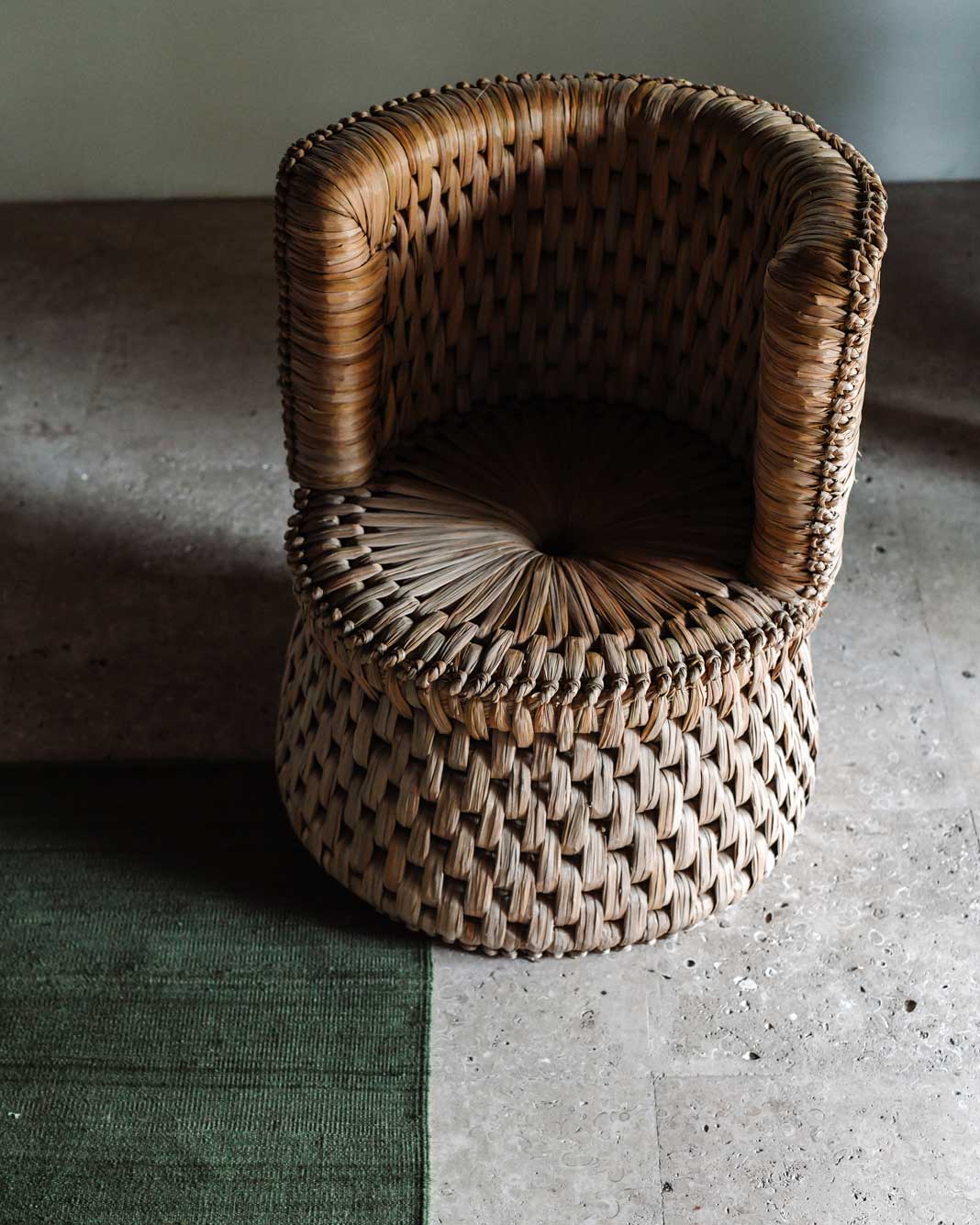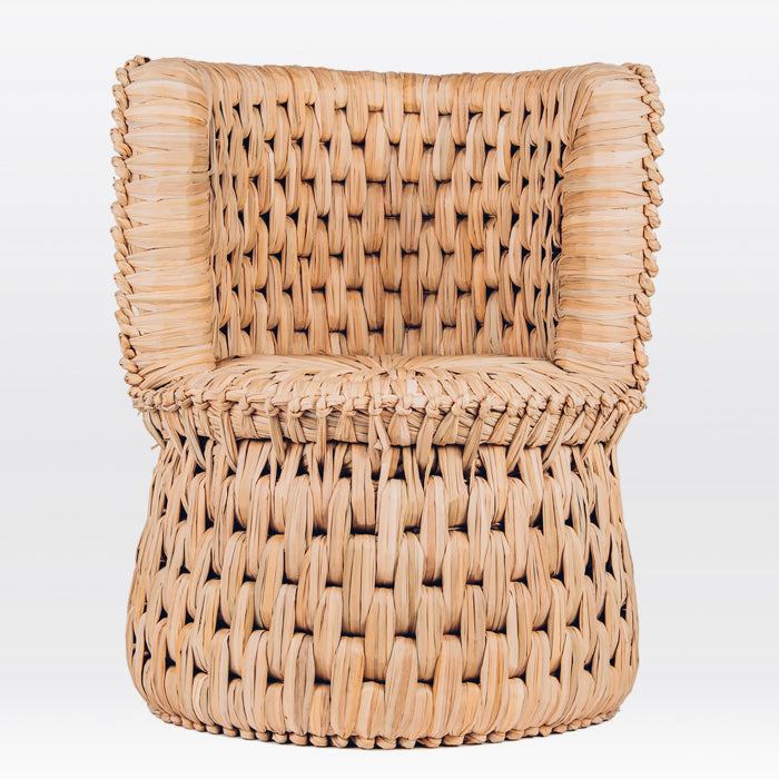 Built from woven tule fiber on a wood base, the elegant proportions of txt.03